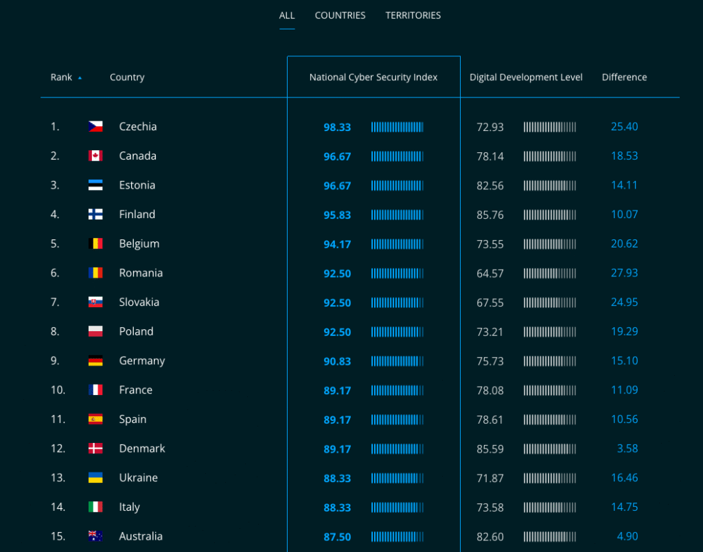 Gre za dejanski termometer kibernetske zrelosti držav in posredno zrelosti njihovih podjetij, javnega sektorja in digitalne družbe.