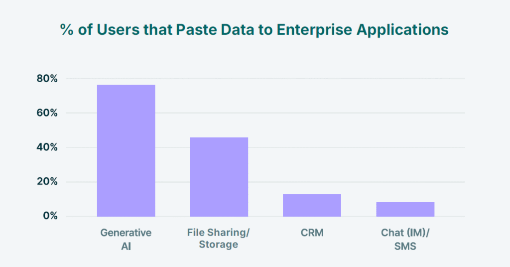 - 77 % zaposlenih lepi podatke v vnosna polja GenAI orodij,
